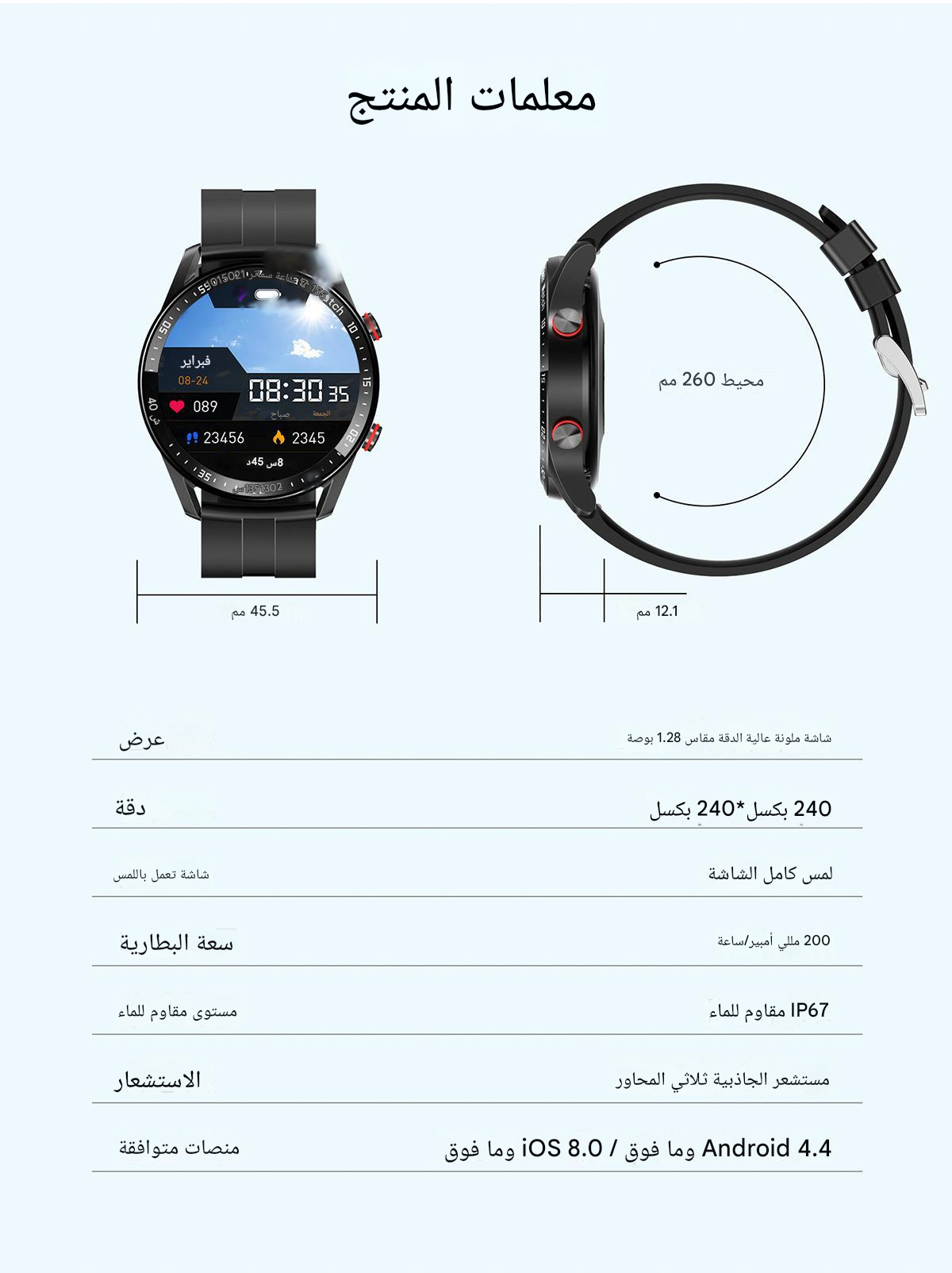 قبل 5 دقائق افضل ساعة ذكية HW20 - أسود